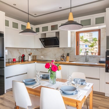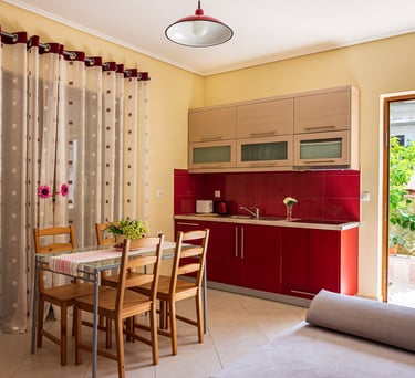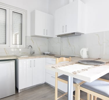 A stylish and well‑appointed suite with one bedroom, a cozy living area, and a private bathroom. Guests enjoy air conditioning, a fully equipped kitchenette, a balcony or outdoor seating, and thoughtful amenities,